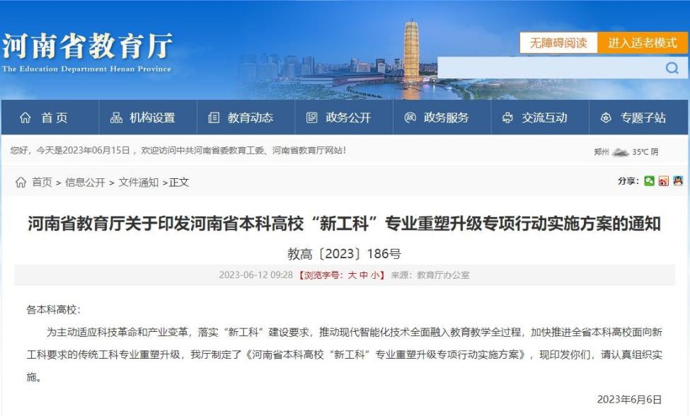 近日,河南省教育厅发布《河南省本科高校“新工科”专业重塑升级专项行动实施方案》(以下简称《实施方案》),提出打造“新工科”特色优势专业集群,构建全方位提高人才自主培养质量体系。